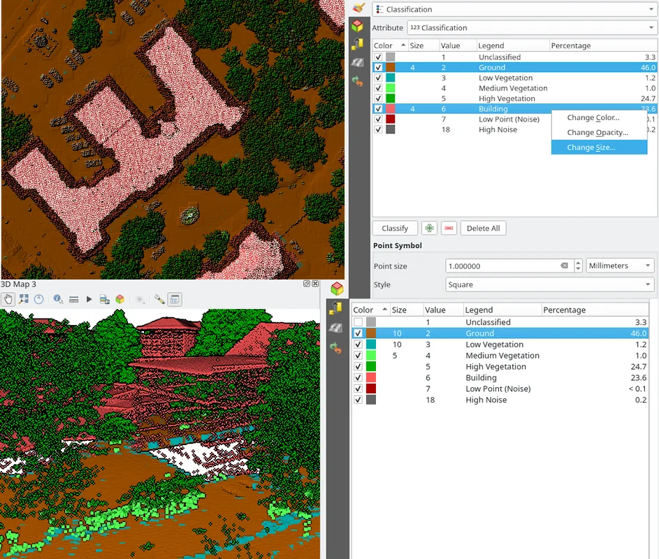 In QGIS 3.36 you can now override the default point size for discrete categories in both 2D and 3D views.