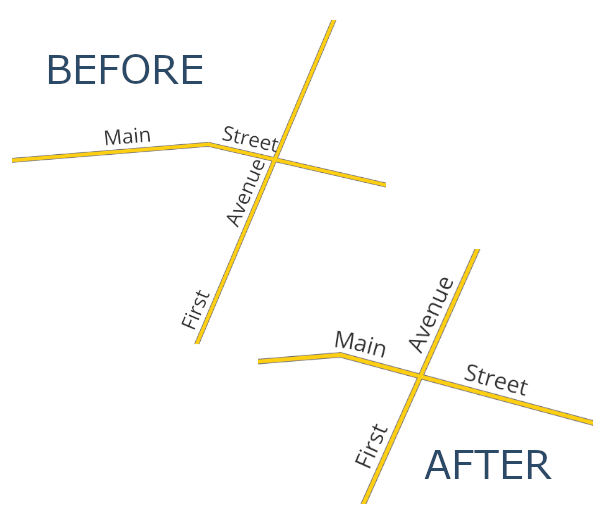 • Stretch word spacing to fit line: When selected, this mode increases (or decreases) the word spacing used for each label in order to fit the entire text over the actual length of the curved line geometry.