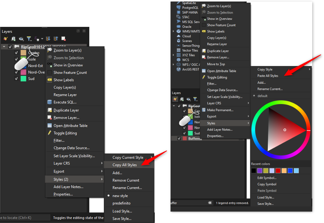 When a layer has multiple styles, the layer tree context menu now contains a new “Copy All Styles” action. Triggering this will copy the definition of ALL the layer’s styles to the clipboard.