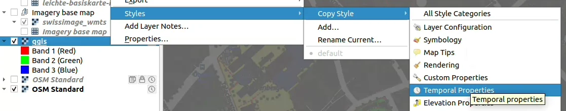 QGIS now supports categories for copying properties and styles between raster layers (instead of simply forcing the use of AllStyleCategories as before), and now includes raster data categories for:
