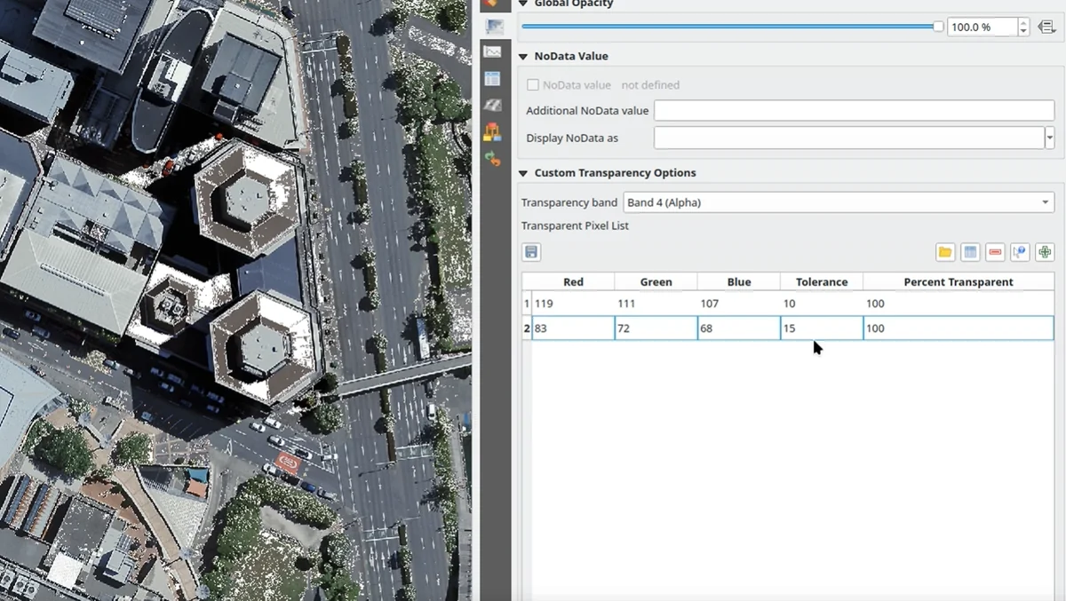Useful for photographs or compressed rasters where a range of color values must be made transparent.