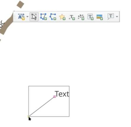 Allows creating of callout lines (or bubble callouts) which link the text to a map location. To create a callout, users select the text item and then drag out the central x node to the desired callout end point.